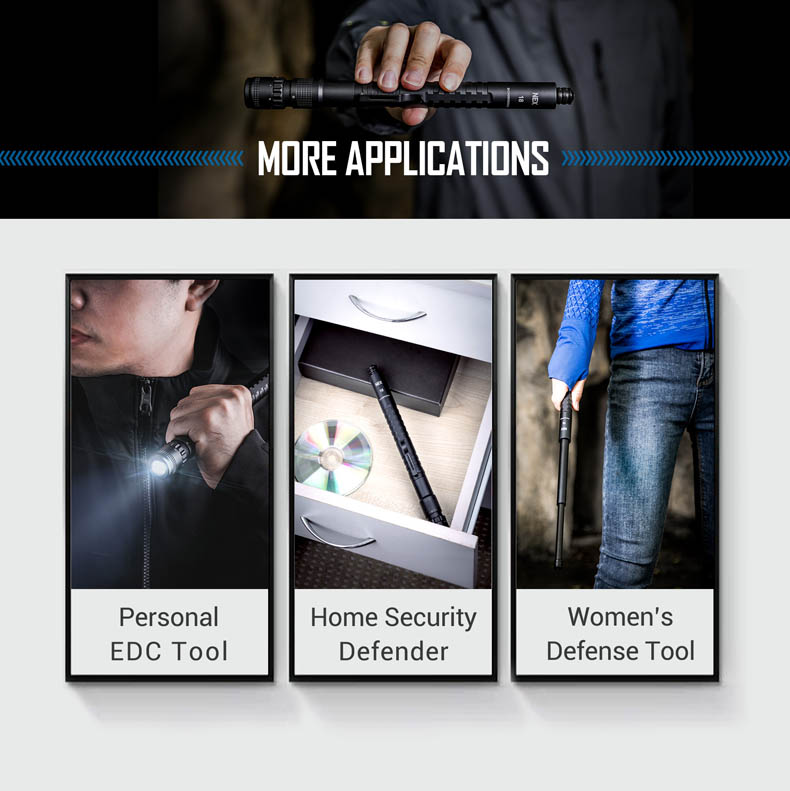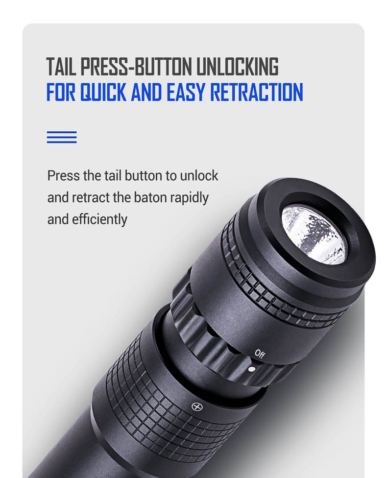 - กระบองยืดออกและหดเก็บได้อย่างราบรื่นโดยไม่โยกคลอน
