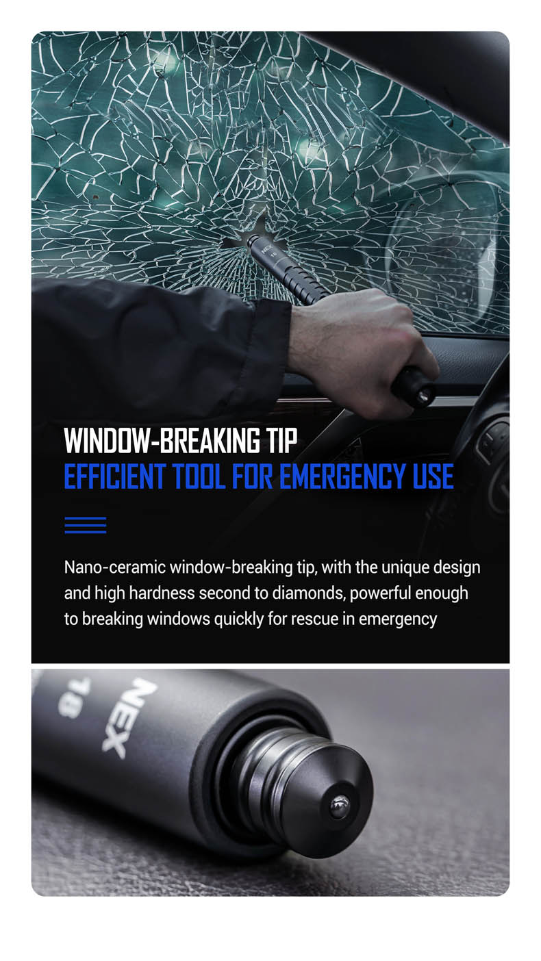 - ปลายกระบองมาพร้อมหัวสำหรับกระแทกกระจก