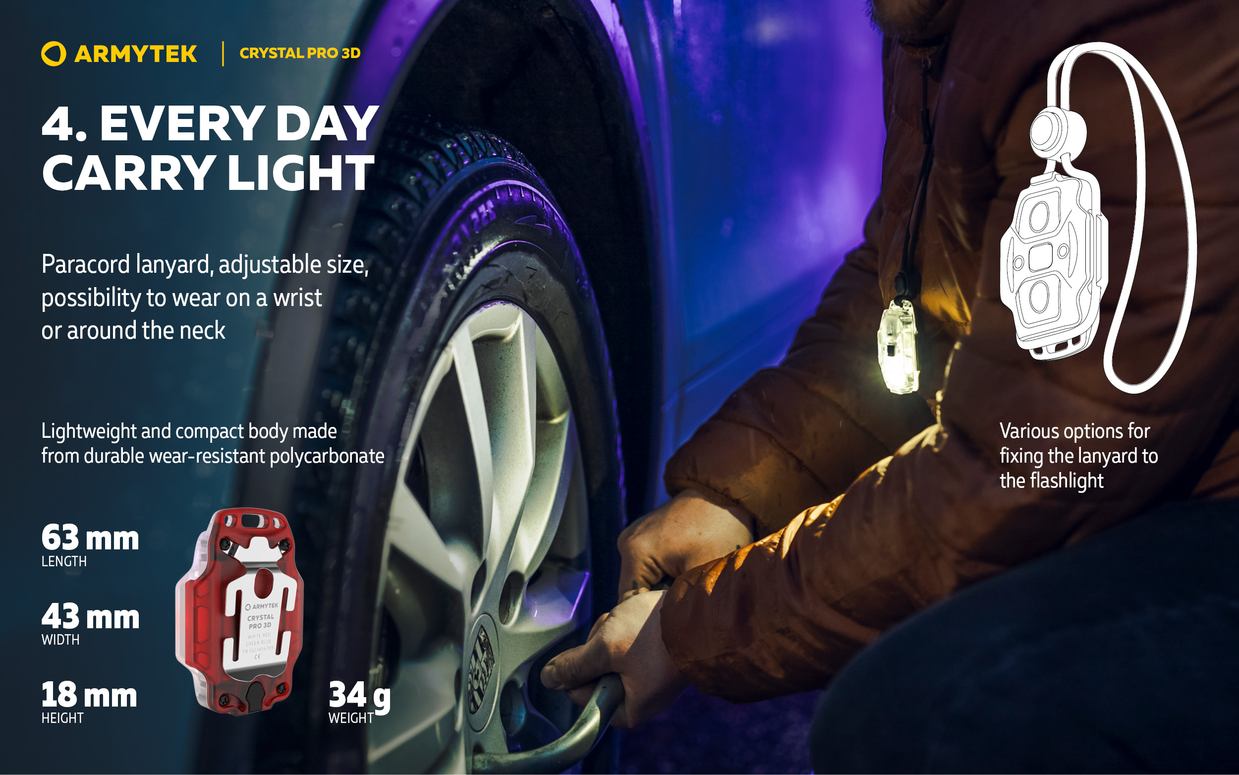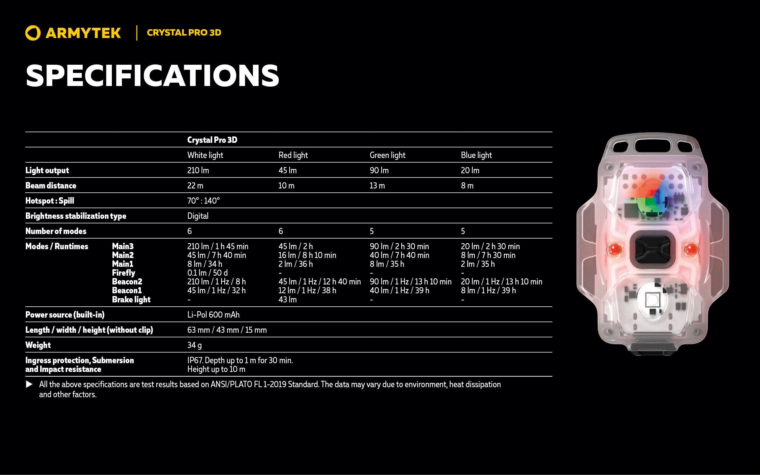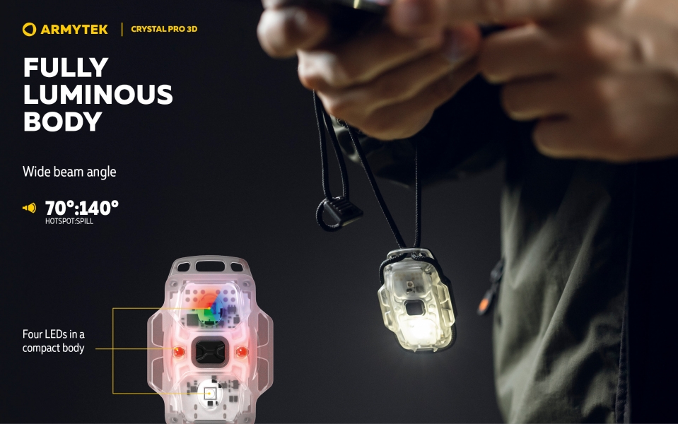 เช่นเดียวกับไฟฉายในซีรีส์เดียวกัน Crystal Pro 3D ให้ลำแสงแบบกว้าง เหมาะสำหรับการใช้งานในระยะใกล้