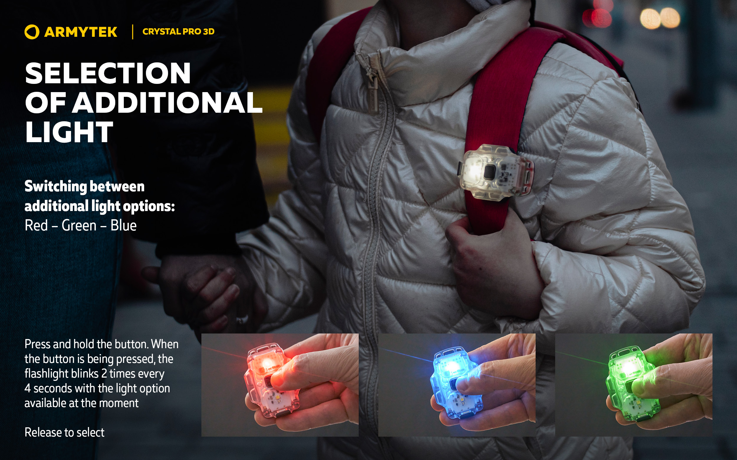 พร้อมเพิ่มตัวเลือกสีแสงมากขึ้น ไม่เพียงแค่แสงสีขาวและสีแดงเท่านั้น แต่ยังมีสีเขียวและสีน้ำเงิน