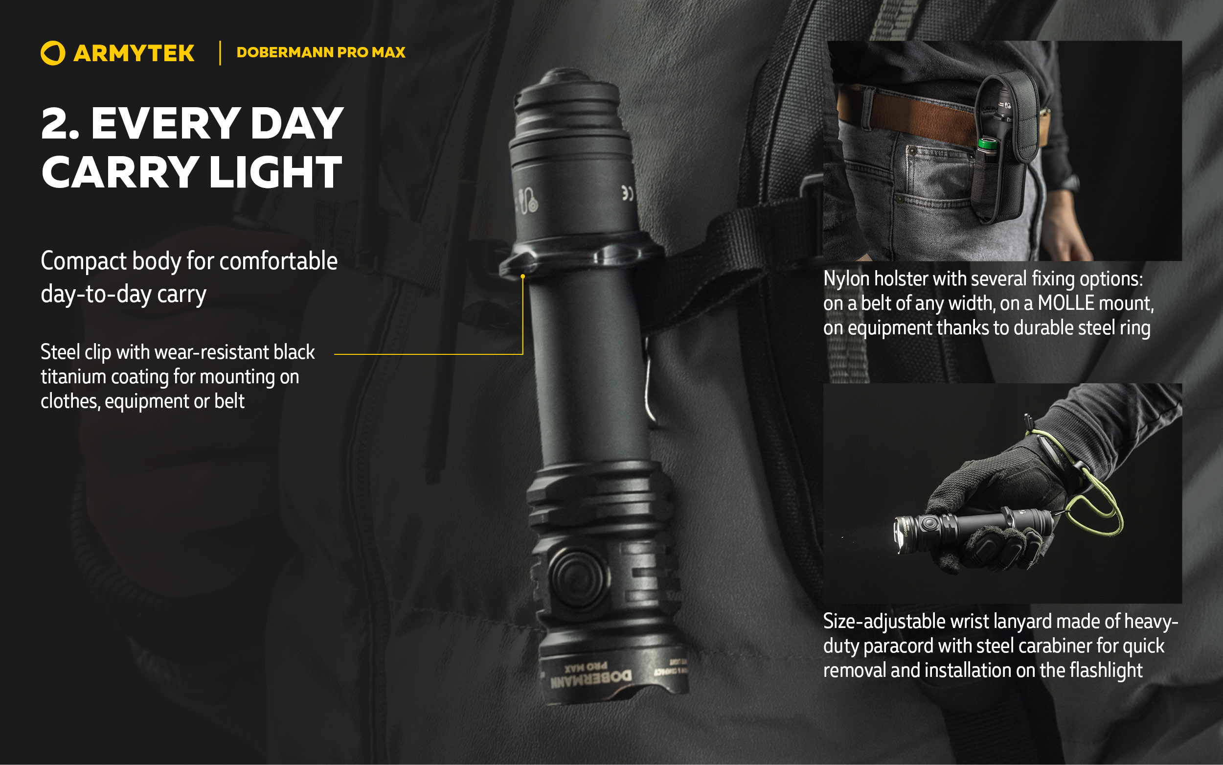 Armytek Dobermann Pro Max White light คือไฟฉายยุทธวิธีขนาดกะทัดรัดที่สามารถใช้งานได้ทุกวัน