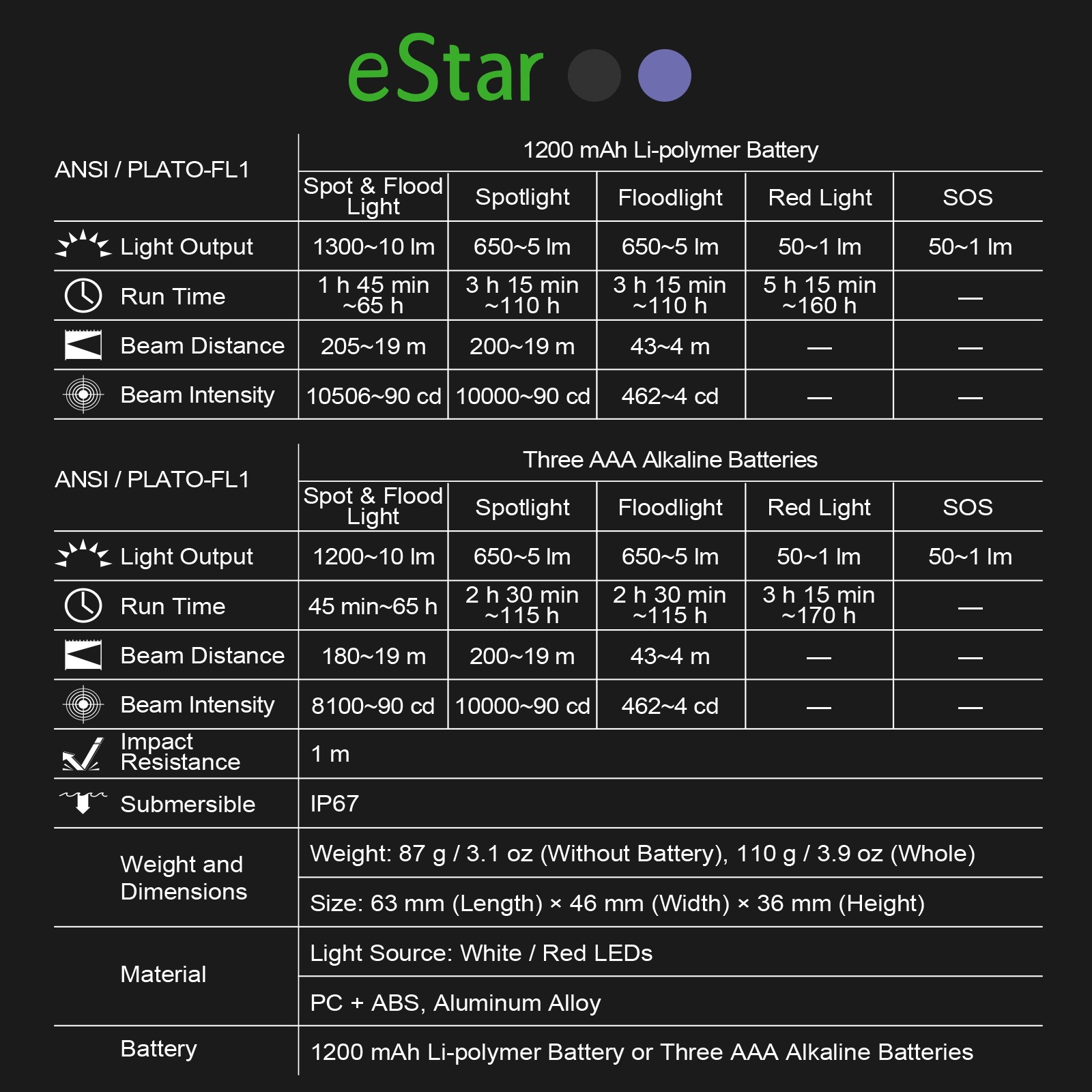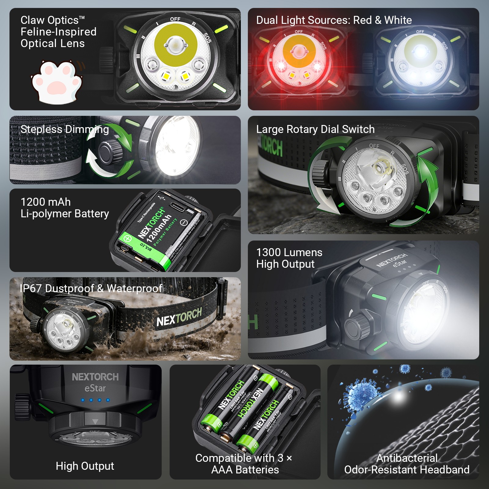 Nextorch eStar 1300 lumen Ultra-Bright Li-polymer Headlamp 1200 mAh ไฟฉายคาดศีรษะ eStar