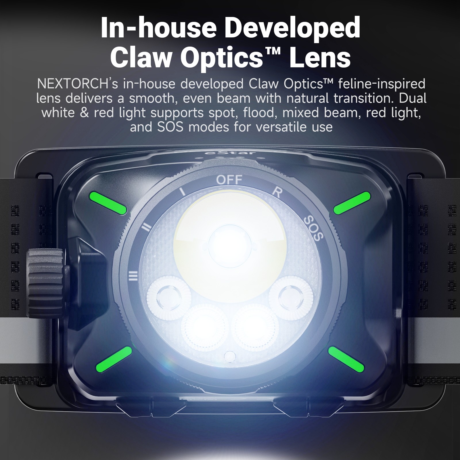 ขับเคลื่อนด้วยเลนส์ Claw Optics™ ที่พัฒนาโดย NEXTORCH ซึ่งได้รับแรงบันดาลใจจากดวงตาแมว