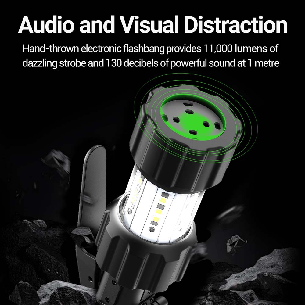 มอบศักยภาพด้านการสร้างสิ่งรบกวนระดับมืออาชีพให้กับผู้ใช้ทั่วไป เหมาะอย่างยิ่งสำหรับสถานการณ์ฝึกยุทธวิธี การป้องกันบ้าน และการส่งสัญญาณฉุกเฉิน อุปกรณ์ขนาดกะทัดรัดนี้มาพร้อมพลังสโตรบ 11,000 ลูเมน และเสียงเตือน 130 เดซิเบล เทียบเท่ารุ่นสำหรับงานมืออาชีพ แต่ได้รับการออกแบบใหม่ให้ใช้งานง่ายขึ้น พร้อมพื้นผิวจับที่ดีขึ้นเพื่อความมั่นคงในการถือใช้งาน