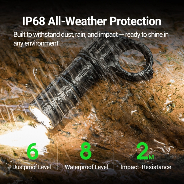 ตัวไฟฉายทำจากอะลูมิเนียมเกรดอากาศยานแบบชุบแข็ง anodised ระดับสูง มาตรฐานกันน้ำ IPX8 (ลึก 2 เมตร)